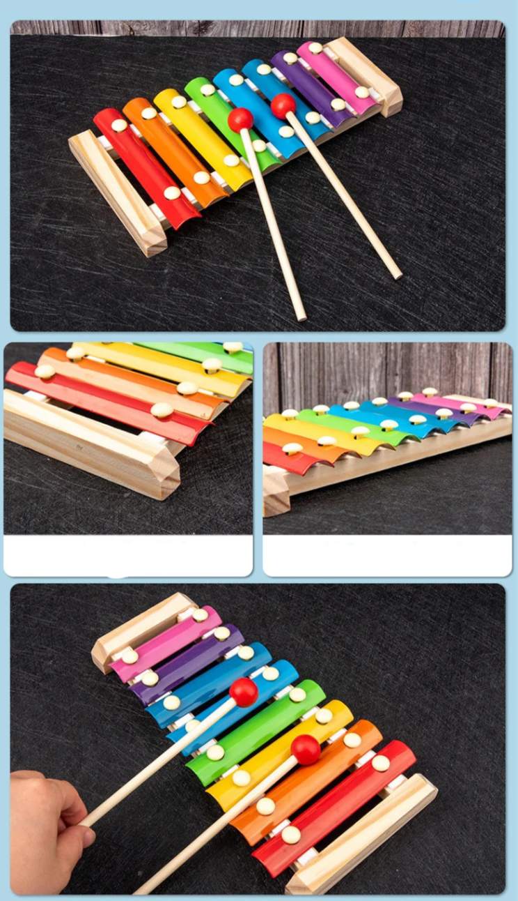 🎵 Xilofone colorido em madeira com baquetas