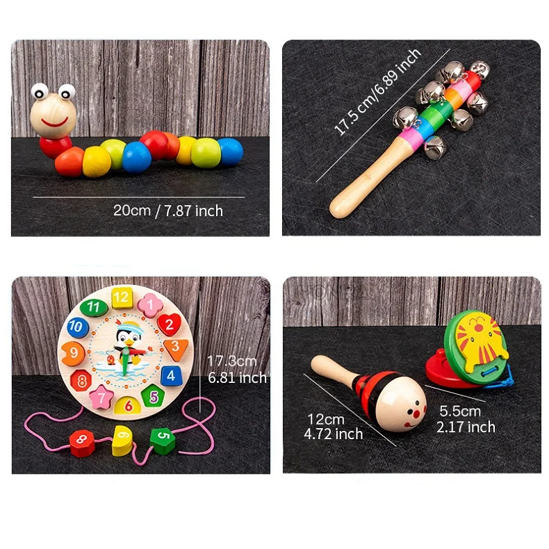 Este incrível Kit de Brinquedos Montessori 10 em 1 foi cuidadosamente desenvolvido para proporcionar uma experiência lúdica, educativa e segura para as crianças pequenas. Feito em madeira natural e com pintura atóxica, combina cores vibrantes, diferentes texturas e desafios pedagógicos para estimular a criatividade, a evolução motora, as habilidades cognitivas e sensoriais.